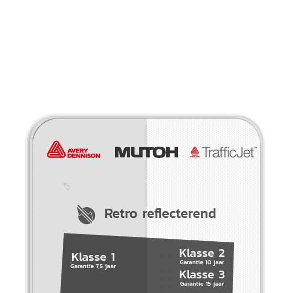 Klik hieronder op de 'Ontwerp aanpassen' of 'Bewerk en bestel' button om de afmeting en reflectieklasse te selecteren. In de SignEditor zie je vervolgens de bijbehorende prijs!