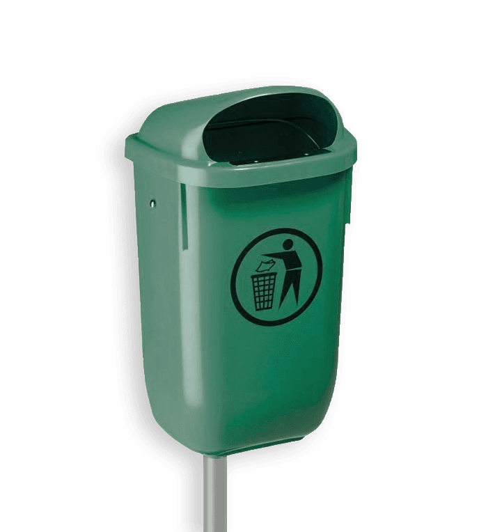 Kunststof vuilbak -  beschikbaar in de kleuren oranje en groen. De vuilnisbak is voorzien van een slot zodat de container met afval beschermt blijft. Er wordt standaard een driekantssleutel meegeleverd. De houder en onderkant zijn gemaakt van verzinkt staal voor extra stevigheid en duurzaamheid.