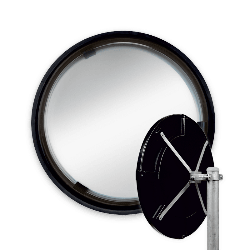 Deze ronde verkeersspiegel met grote kijkhoek is uitermate geschikt om te plaatsen op een T-kruising.