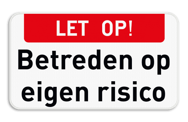 Kies voor het Informatiebord Let op: Betreden op Eigen Risico als je op zoek bent naar een effectieve manier om risico’s te communiceren en de veiligheid op jouw terrein te verbeteren. Zo creëer je een goed georganiseerde en veilige omgeving waar de regels voor iedereen duidelijk zijn en waarin bezoekers hun verantwoordelijkheid begrijpen.